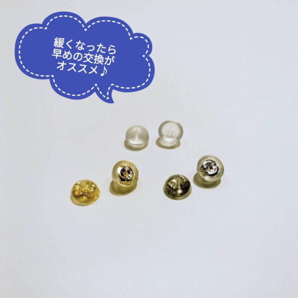 BLOGブログ 2025.10.15 ピアスのキャッチがなくなっちゃた💦緩くて落ちちゃいそう💦 『ピアスのキャッチ、片方なくしてしまった』『緩くて、ピアスポストから落ちそう💦』 などなど、ピアスキャッチでお困りの皆様❗❗ ピアスキャッチのみ販売もしています🎶 シリコンのみのタイプや、シリコンにK18かプラチナのキャッチが 一体化になったタイプがございます✨ 長い期間使用していると、段々と揺るんできてしまいますので キャッチの緩みがある場合、ピアス自体を落とさないために 新しいキャッチに交換をオススメいたします🎶