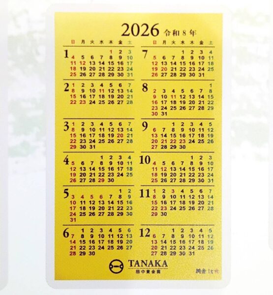 BLOGブログ 2025.11.20 『2026年純金1gカレンダー』受付中❗ 今年も受付が始まりました😊 田中貴金属の『純金1gカレンダー』は、カードサイズでパウチされているので、お財布に入れたり手帳に挟んだり、とても使いやすいサイズです🎶 その他にも、『純金一粒万倍銭1g』や『純金1g招福米お守り』、縁起物や来年の干支にちなんだ物などがあります😊 マシコでは、ご予約承っております🎶 金が高騰している今純金の物を身につけて、『開運』を願ってみませんか❓