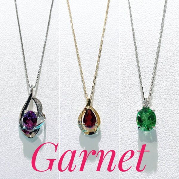 BLOGブログ 2025.12.27 色彩豊かな1月の誕生石『ガーネット』 1月の誕生石ガーネットは、その深紅の色味が有名ですが、 実は青以外のあらゆる色が存在する色のバリエーションが 非常に豊かな宝石でオレンジ、黄色、緑、 紫など多彩にあります😊 またグリーン系のガーネットは、深紅と違った魅力ある色味で人気の高い種類になります 特に‼️デマントイドガーネットはダイヤモンドのように、 ✨煌く輝き✨を放つ特徴があり、ガーネットの中でも特に希少性が高いとされています