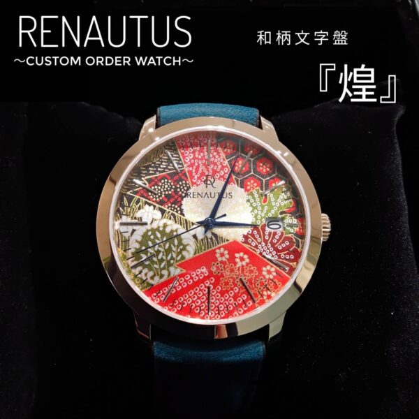 BLOG ブログ 2026.02.14 カスタムオーダーウォッチ⌚️ルノータス 和柄文字盤『煌(こう)』 ルノータスの人気シリーズ 和柄文字盤の腕時計のご注文をいただきました☺️ 文字盤は、鹿の子模様が採用されている 赤と黒の和柄の組み合わせが特徴的な『✨煌(こう)✨』。 青色の時分針と秒針、ケースはピンクゴールドとこだわりのデザイン‼️ お客様も大変喜んでいただきました🎶 店頭では実際に使用される、和柄文字盤のサンプル全6種類が展示✨ それぞれの日本伝統の柄と色合いの美しさをご覧いただけます😉