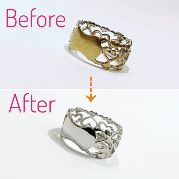 BLOG ブログ 2026.04.09 ホワイトゴールドリングだったのに・・・ お気に入りのピンキーリングを毎日身につけていたら、 「あんなに綺麗だったのに〜、いつの間にか変色していた」 何とかならないか?と、ご相談がありました。 「安心してください、直りますよ‼️」 ホワイトゴールドはどうしても接触面の色が変わってしまいますので びっくりしますよね 仕上がりをご覧ください😊